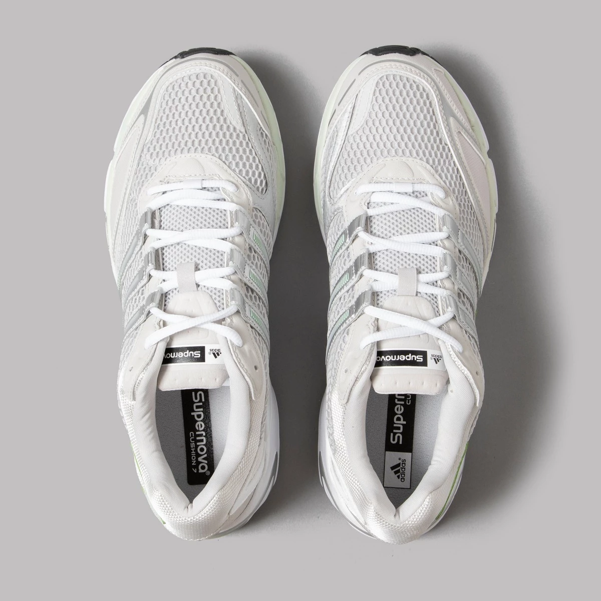 Mesh and textile uppers. EVA midsole. Rubber outer sole. adiPRENE technology. True Sizing. Here we are – the Supernova Cushion 7 from adidas. As you can hopefully see by these choice images, they’re pumped full of time-honoured track-friendly flavour with their perforated mesh chassis and metallic panelling and souped up to the nines with something called adiPrene Tech (which basically means they’re a helluva lot comfier than running shoes of the same ilk). Very good to say the least.Â