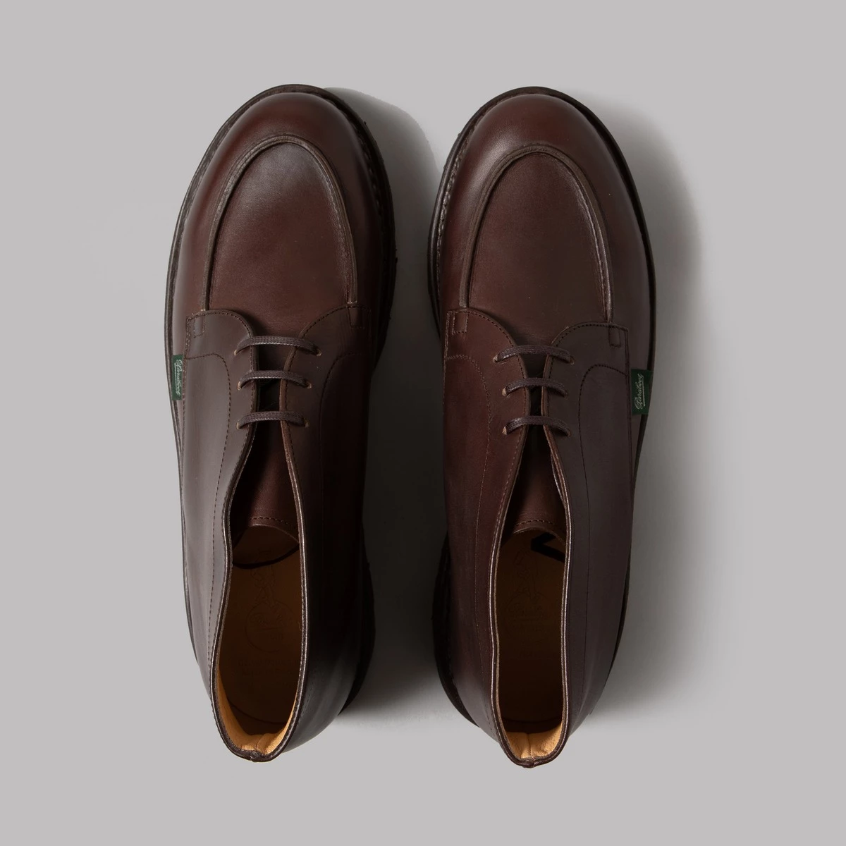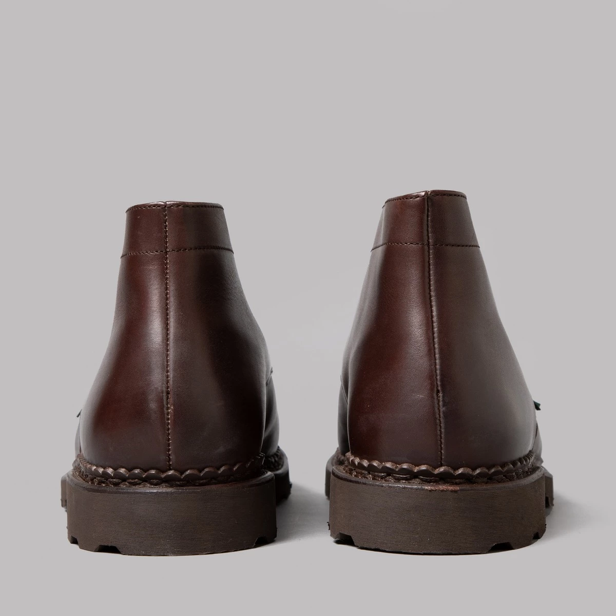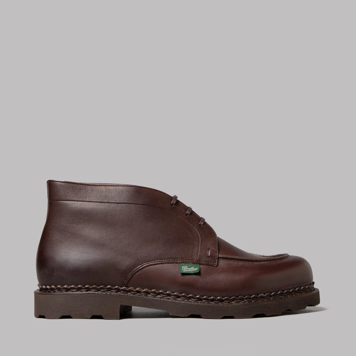 Leather uppers. Lace fastening. Rubber Sole. Made in France. French footwear fanciers Paraboot have made their versions of the classic chukka boot that was first seen in the stirrups of Polo players in the 50’s, except these ones are more suited to ground level swankiness than sports that require galloping around a muddied field, thanks to those seriously smooth slices of hide and hardy welted sole unit.