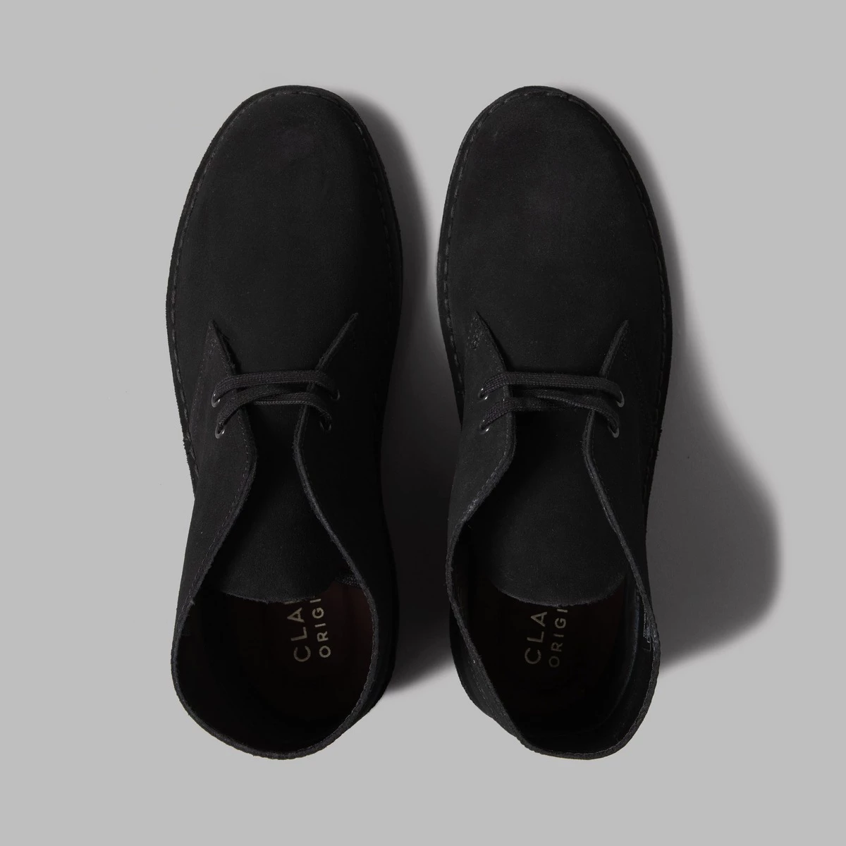 Suede upper. Crepe sole. Two eyelets. Classic Clarks fit, bob on. The Clarks Originals Desert Boot was created in 1950 by Nathan Clark, who took inspiration from the crepe-soled, rough suede boots Army officers had made in the bazaars of Cairo. Since then the Desert Boot has been popular with all kinds of cool kids, from rock gods to ragamuffins. Extra rocksteady style-points when worn with a pair of Burlington’s ‘diamond socks’.