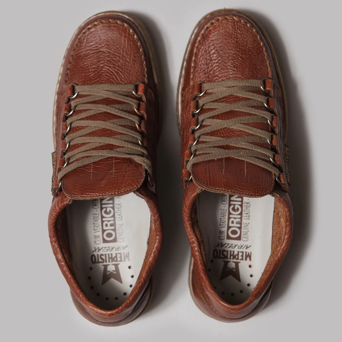 Leather upper.Shock absorbing mid-sole. Cushioned heel. Padded tongue. Made in France. One of our all-time favourite shoes at Oi Polloi HQ, the Mephisto Rainbow is French comfort-focussed footwear at its summit. The Rainbow is carefully put together with ‘Soft Air’ technology – a shock absorbing bit of genius that relieves back aches and reduces shock on those rough and tough concrete streets. These nifty shoes also have the most premium leather uppers that one could wish for, and its silhouette is a cross between a boot and a trainer – with a splash of hiking inspiration in there. Finessed with those ever-so-recognisable rainbow stitches to the sidewalls – this is a real 10/10 shoe.