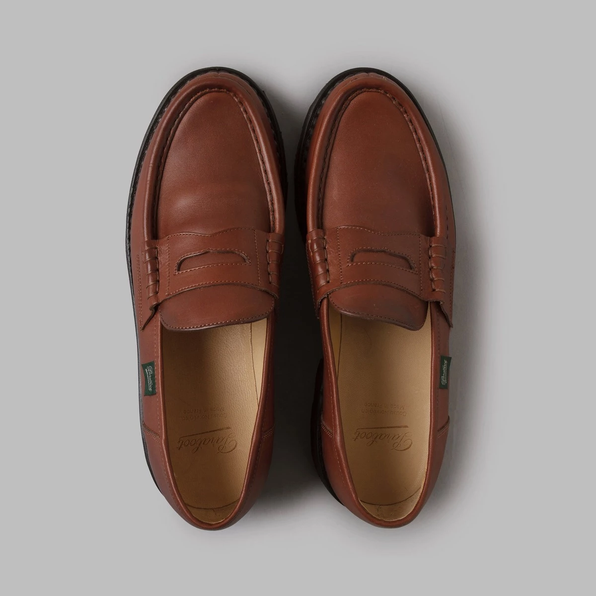 Heres one for all the jazz cats out there the Paraboot Reims. With those sharp toe-boxes and chunky soles, these bare more than a passing resemblance to Paraboots most-lauded shoe-based offering, the Michael, without the added faff of having to tie laces. Very nice. Leather upper.