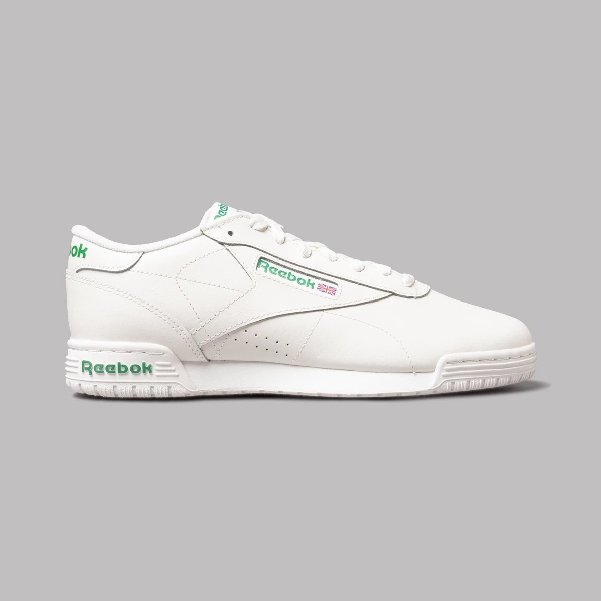 Leather uppers. Rubber outer sole. Woven brand patch on tongue. True Sizing. Here are a pair of trabs Reebok call the Ex-O-Fit Clean Logo. Why? Well…it flexes ‘n’ bends like fitness shoes from the 80’s, but instead of the garish paintjobs popular way back when, they’ve opted for some crisp white leather uppers, with the only decoration being a series of subtle signatures from the kick kings themselves. Nothing to dislike here.