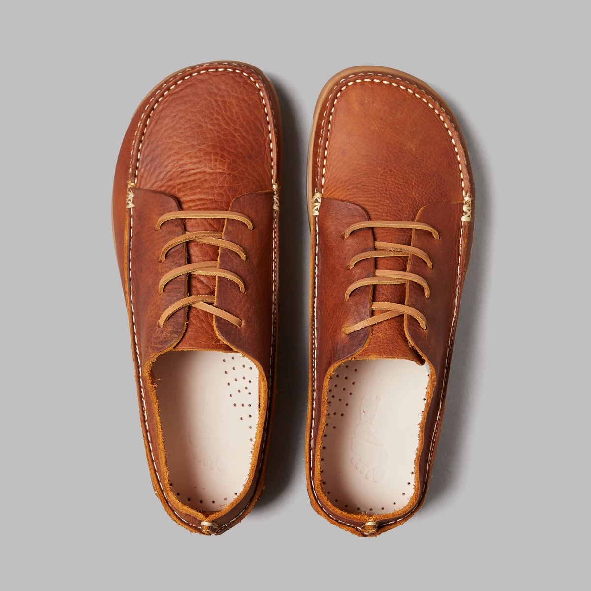 Tumbled leather upper. Negative Heel. Rubber and cork outsole. Veg tan leather footbed. Raw Edge seam. Leather laces. True sizing